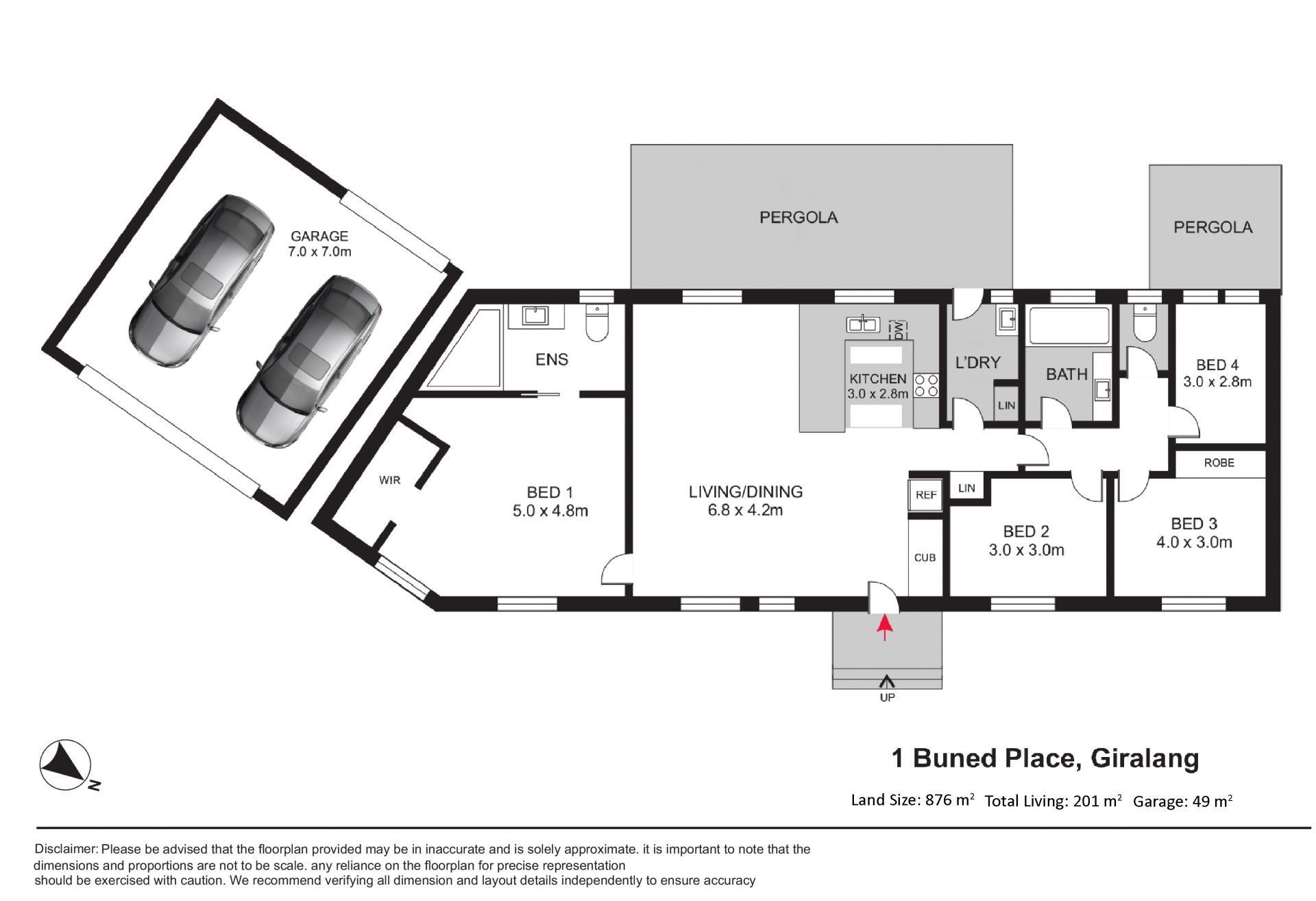 - Extra-large garage (49m²) with remote control, workshop area, and rear roller door