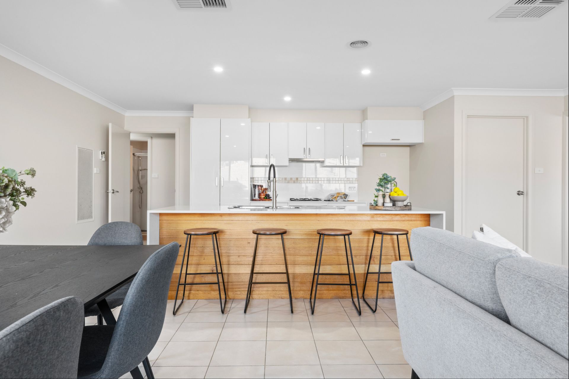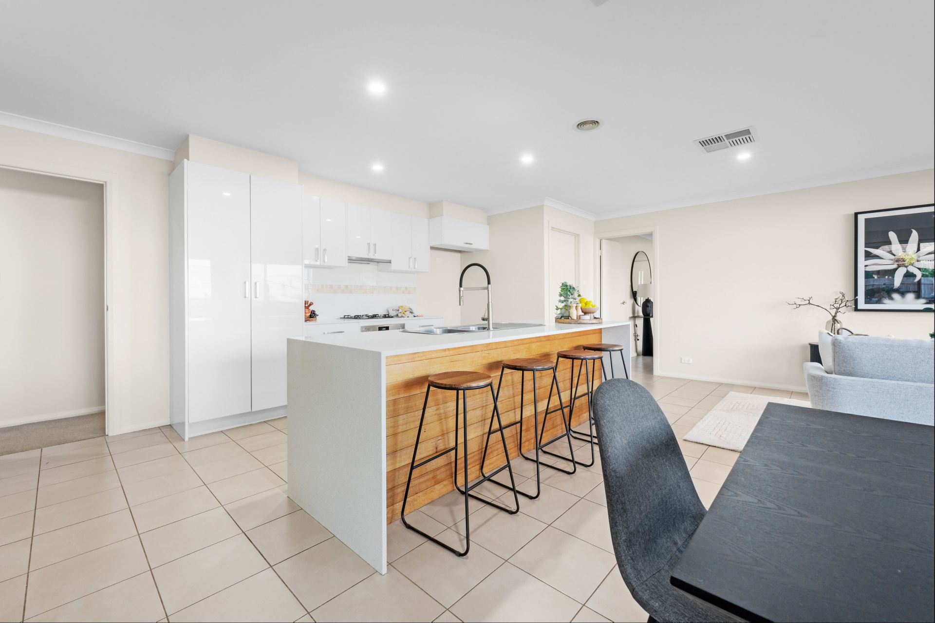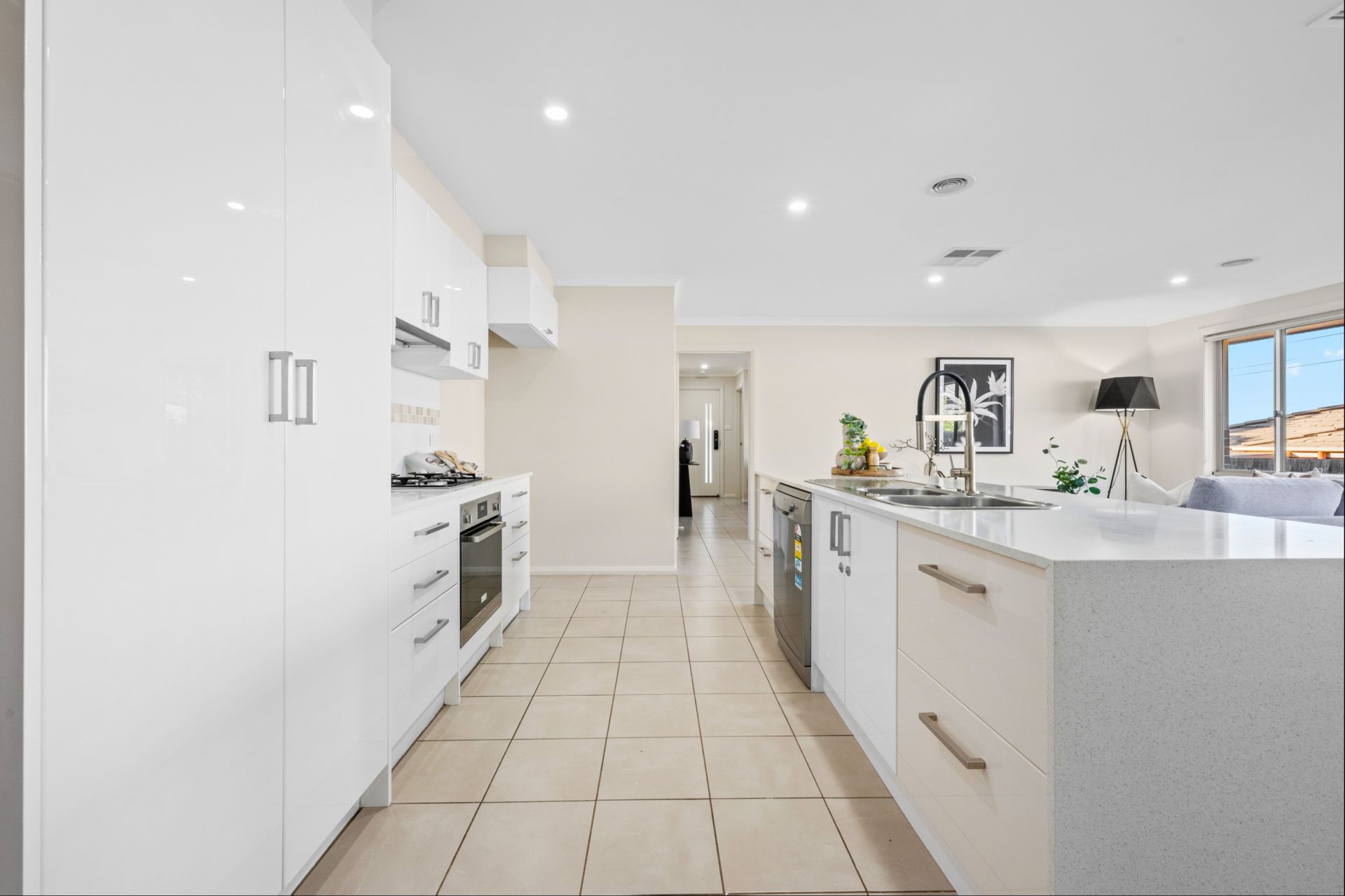 Inside, the home provides two generous separate living areas, giving families the flexibility to create a theatre room, kids' zone or formal lounge. Modern downlights, a digital front door lock and an easy-flow open plan layout connect the kitchen, dining and family spaces seamlessly.