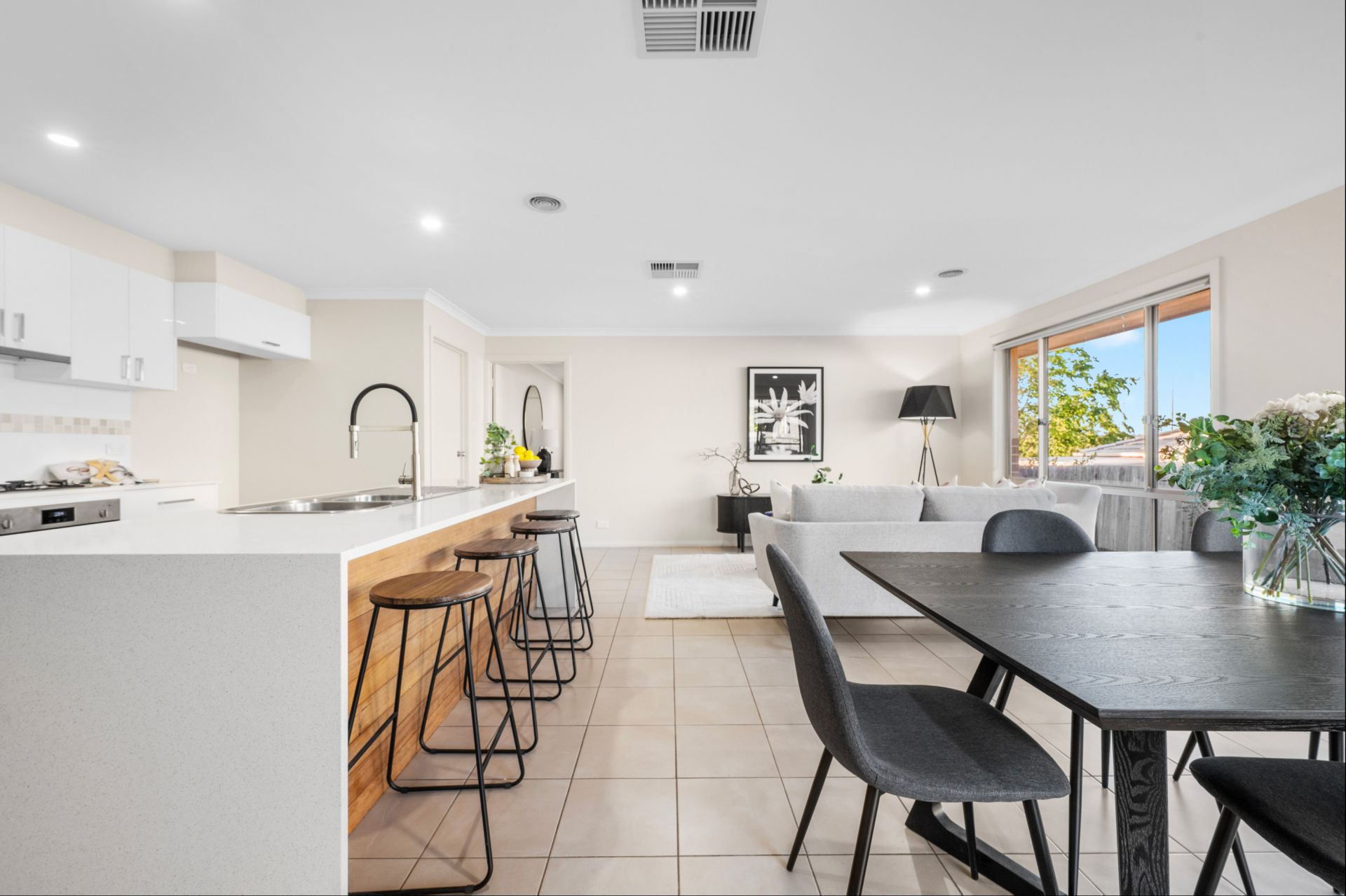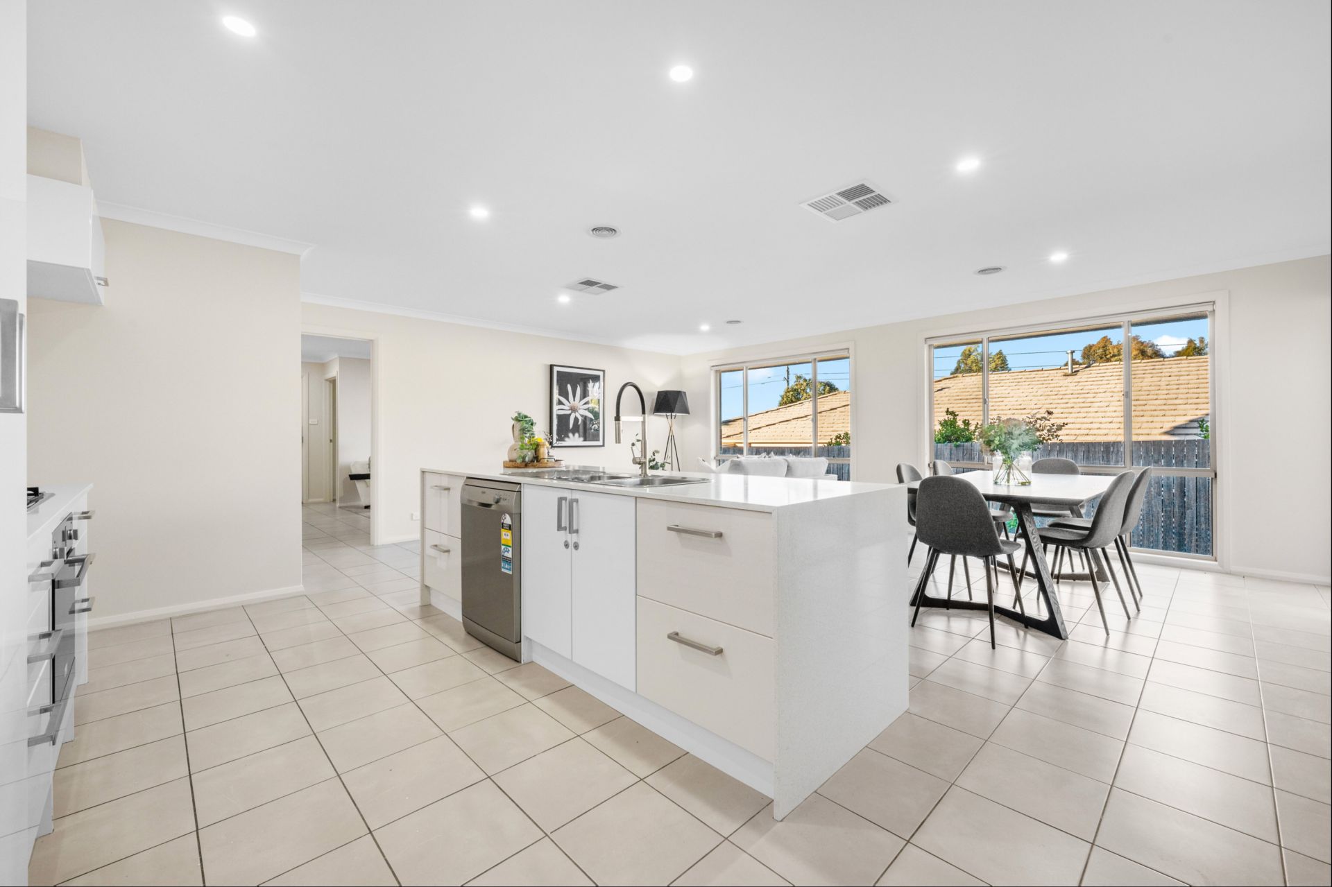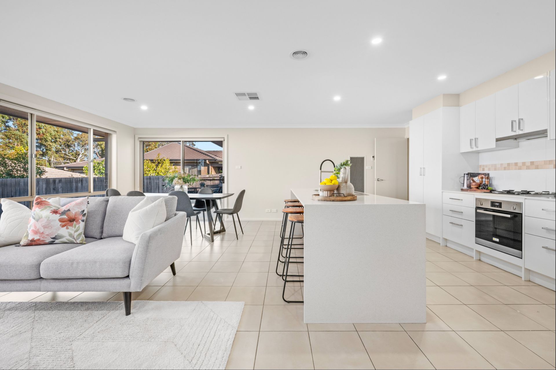 The contemporary kitchen features stone benchtops, quality appliances and excellent storage-perfect for everyday cooking and weekend entertaining. Sliding doors open to the private, low-maintenance backyard, ideal for barbecues, playtime or a quiet afternoon outdoors.