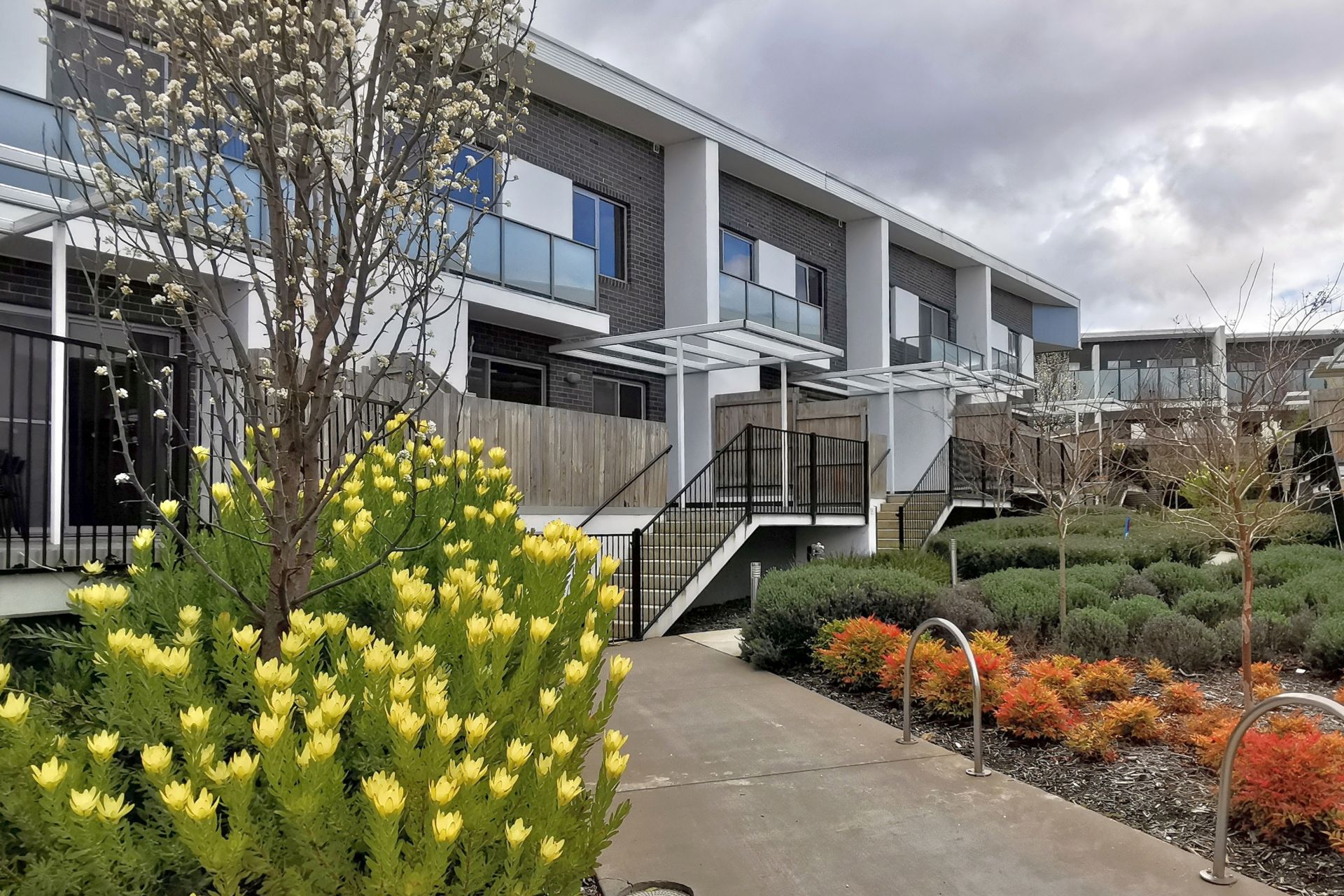 Conveniently situated near the University of Canberra and Belconnen Town Centre, this property offers easy access to amenities and a private front courtyard. The ground floor boasts an open-plan lounge and dining area with sliding door access to the courtyard, complemented by a stylish kitchen featuring white cabinetry, drawer storage, and quality appliances including a dishwasher and gas cooktop. Upstairs, three well-sized bedrooms, each with storage, await along with main and ensuite bathrooms. The master bedroom includes built-in wardrobes and a private ensuite for added luxury.