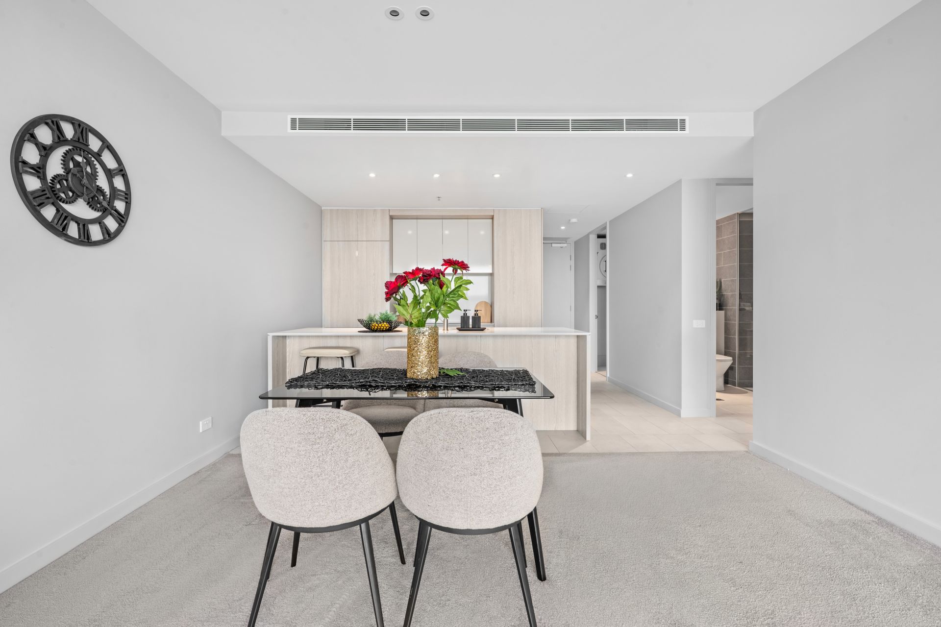 - Open-plan living and dining flowing to private balcony