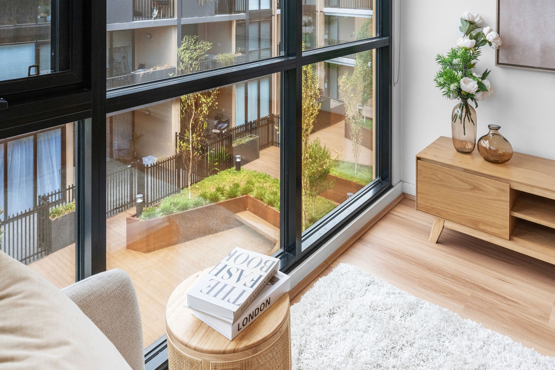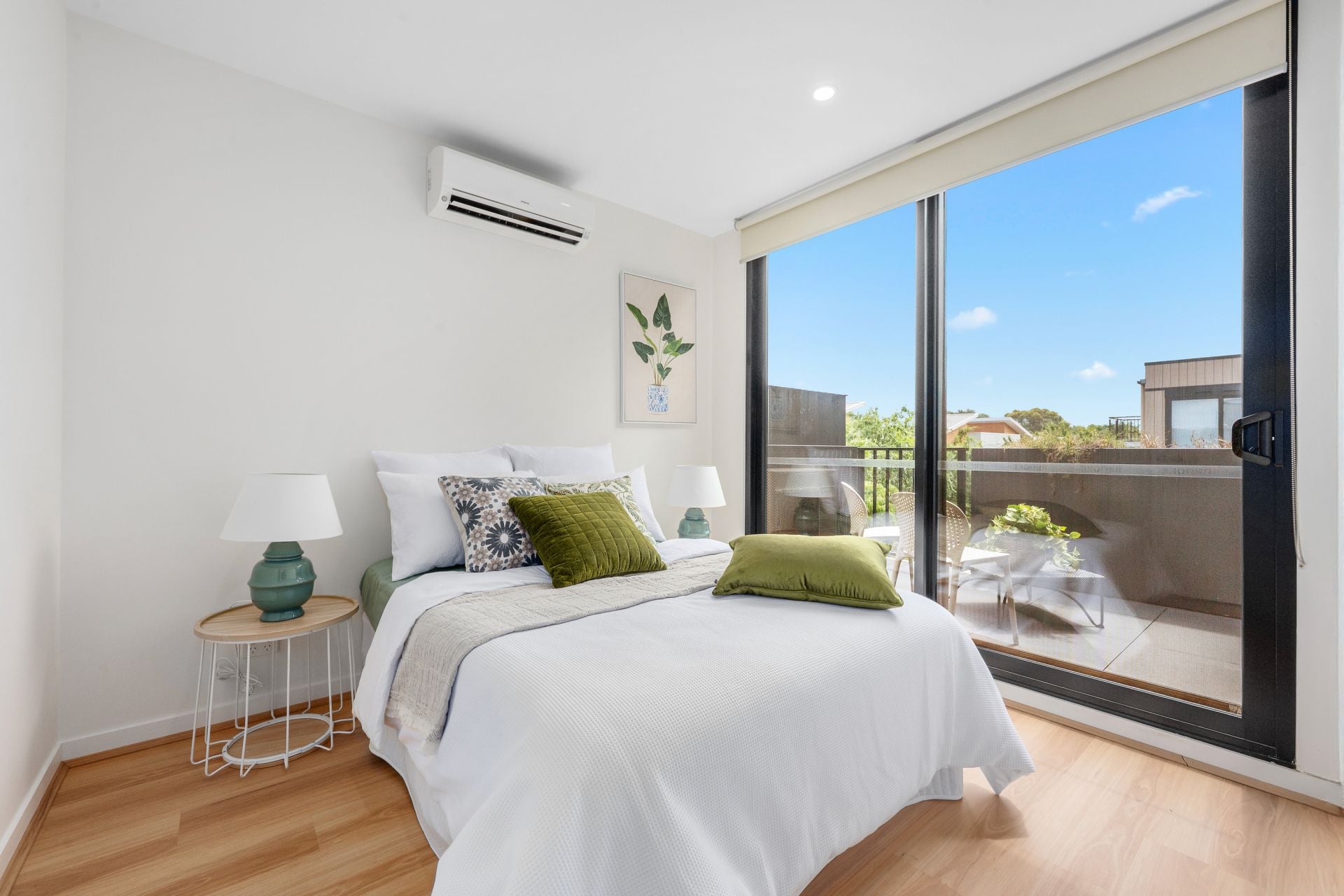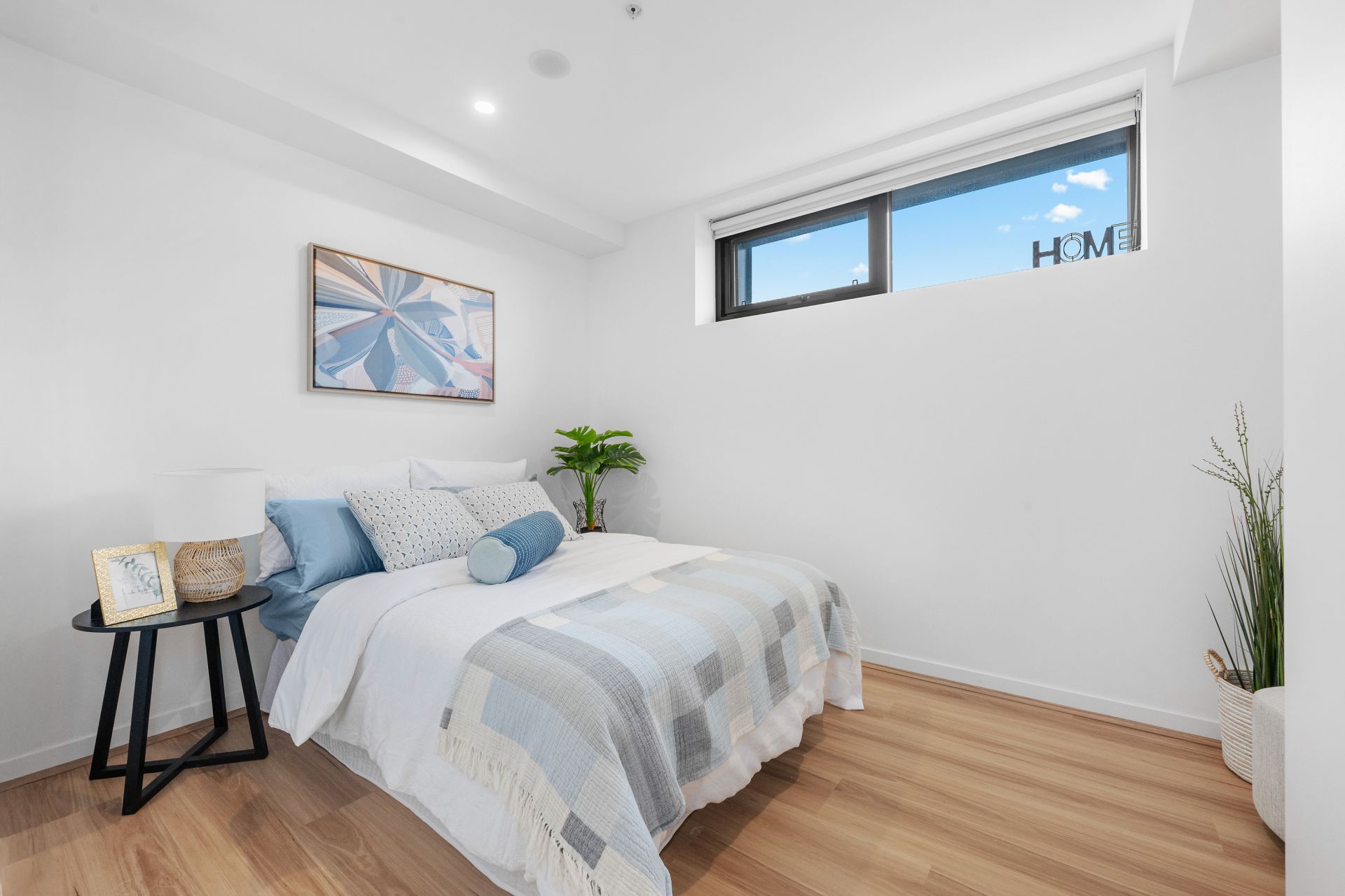 The main bedroom is spacious and includes a built-in wardrobe, while the second bedroom is filled with natural light from a large window, offering flexibility as a guest bedroom, home office, or additional living space
